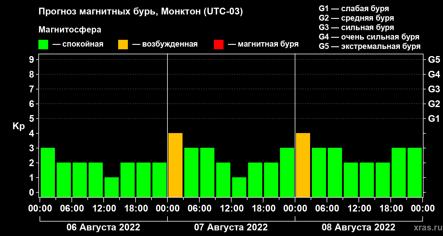 Прогноз магнитных бурь в Монктоне — 6 августа 2022 года