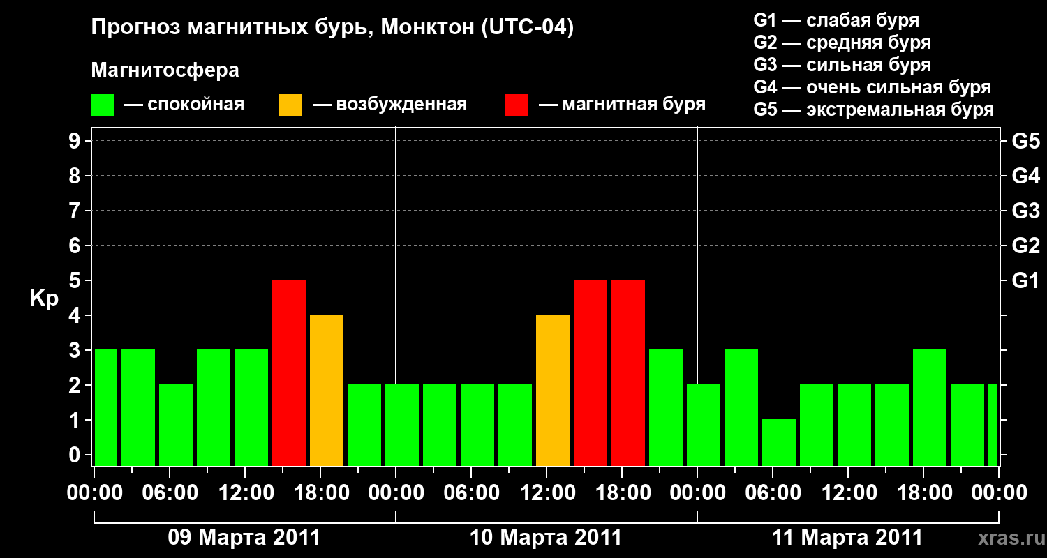 Прогноз магнитных бурь в Монктоне — 9 марта 2011 года