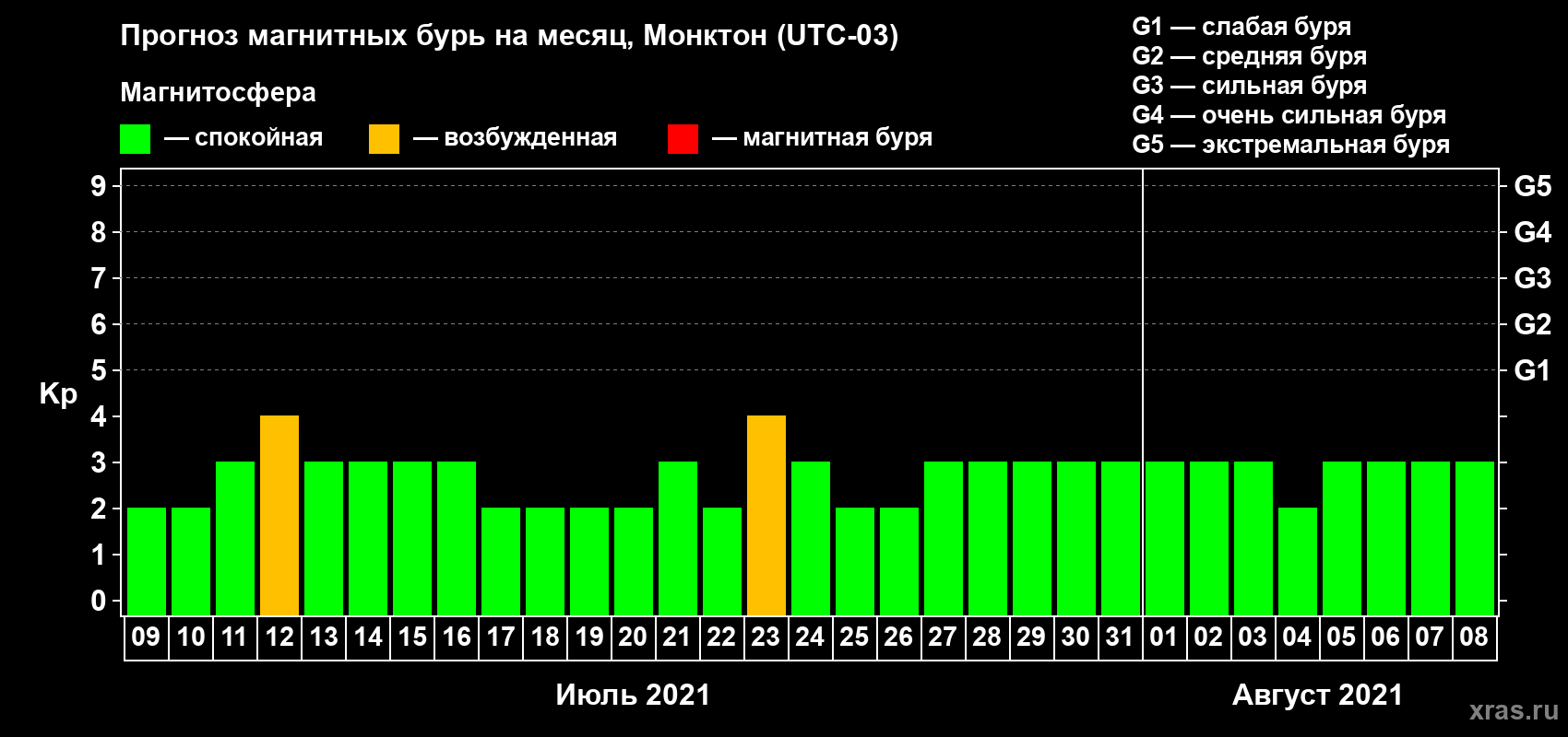 Прогноз магнитных бурь в Монктоне — 9 июля 2021 года