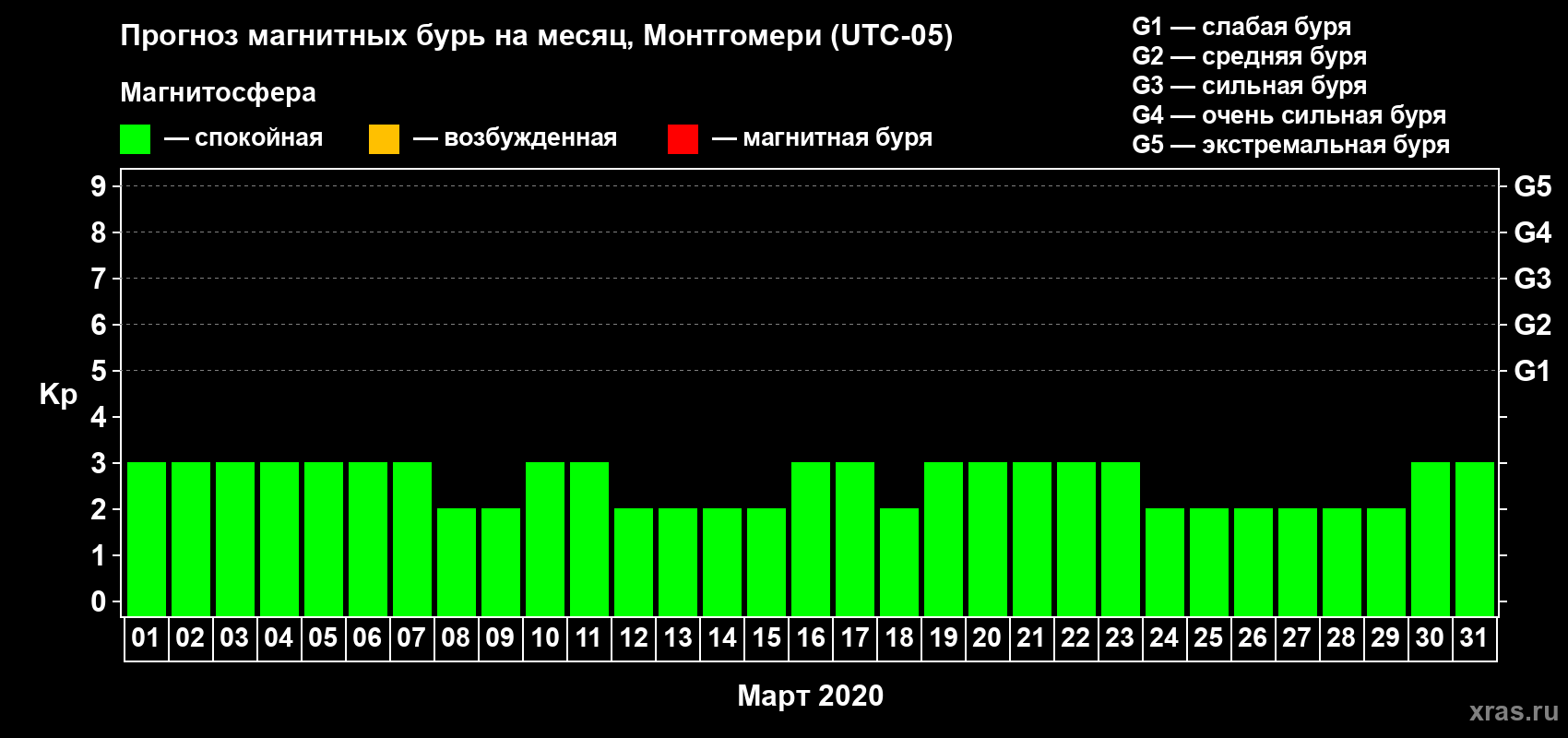 Прогноз магнитных бурь Монтгомери — 1 марта 2020 года