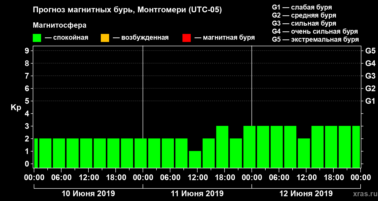 Прогноз магнитных бурь Монтгомери — 10 июня 2019 года