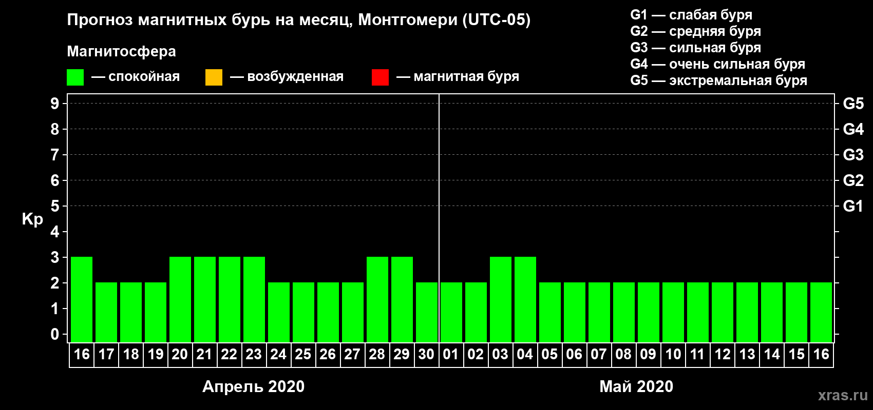 Прогноз магнитных бурь Монтгомери на 16 апреля 2020 года