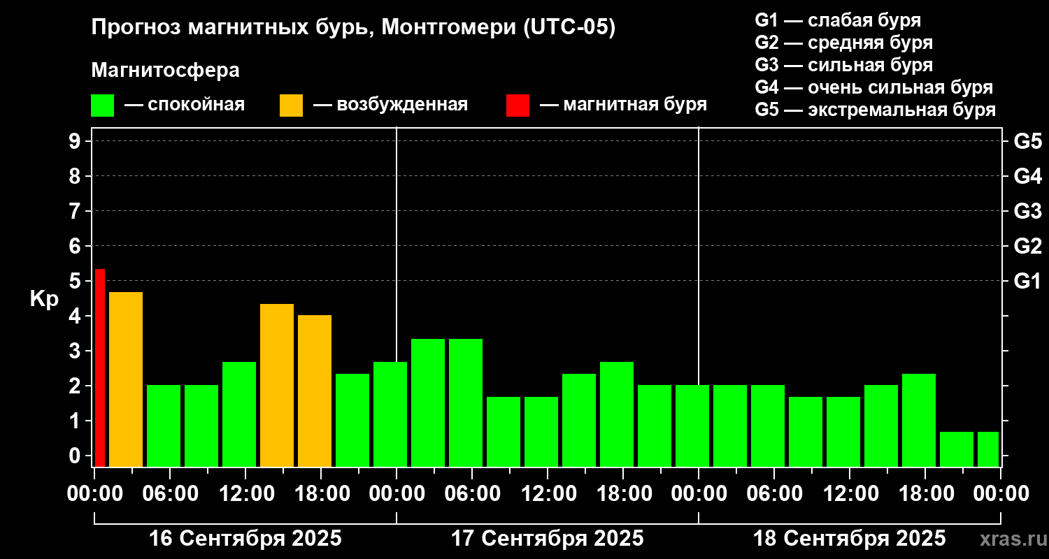 Прогноз магнитных бурь Монтгомери на 16 сентября 2025 года