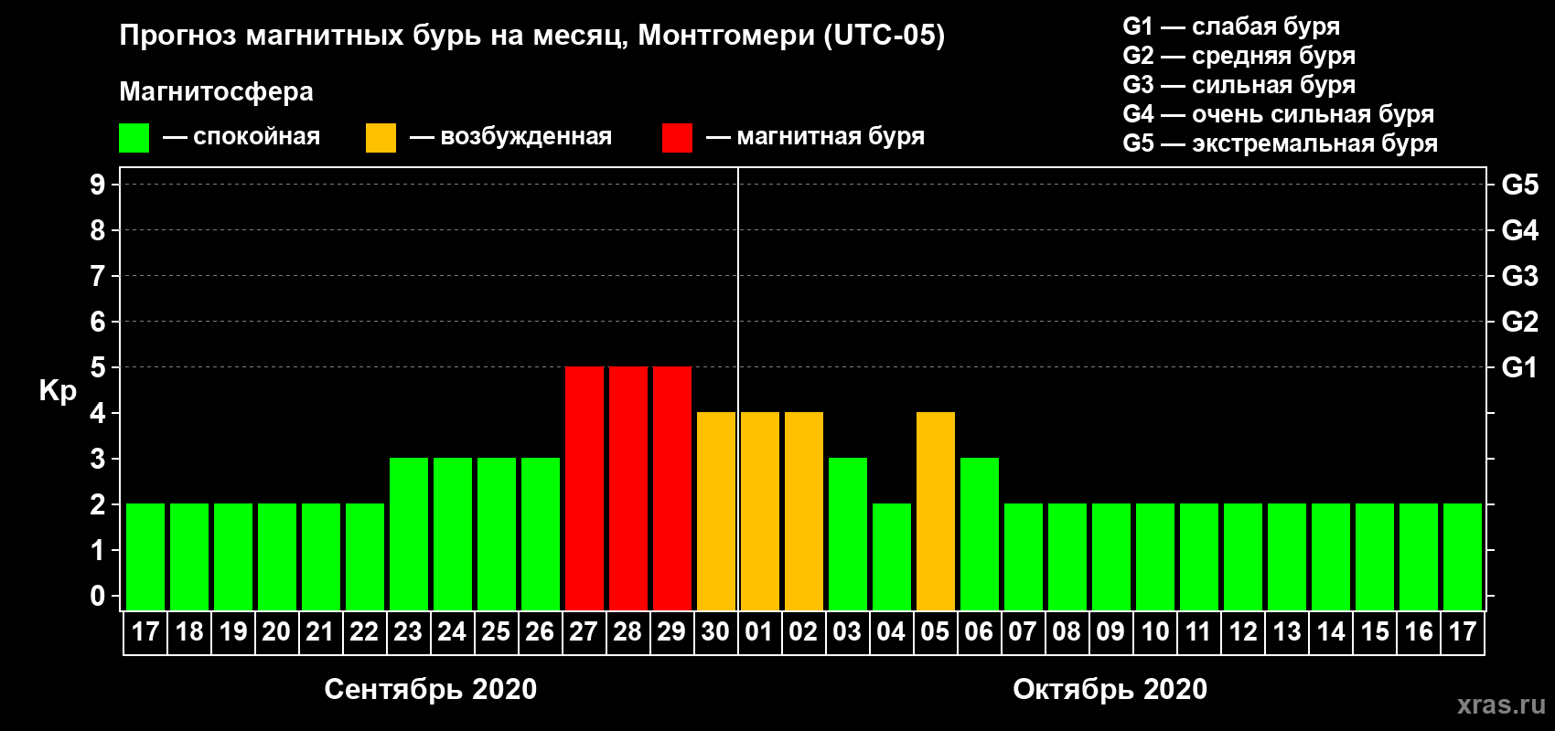 Прогноз магнитных бурь Монтгомери на 17 сентября 2020 года