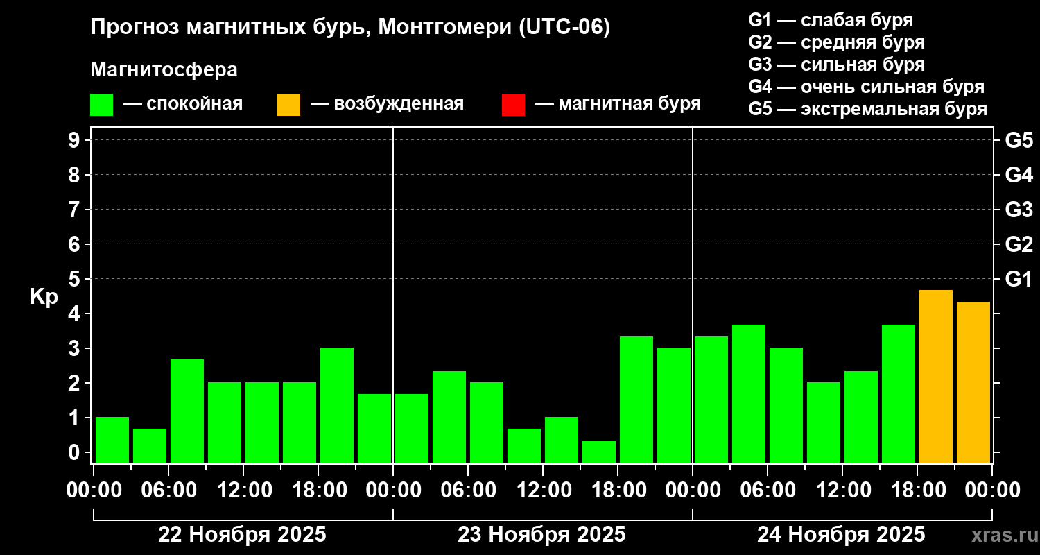 Прогноз магнитных бурь Монтгомери — 22 ноября 2025 года
