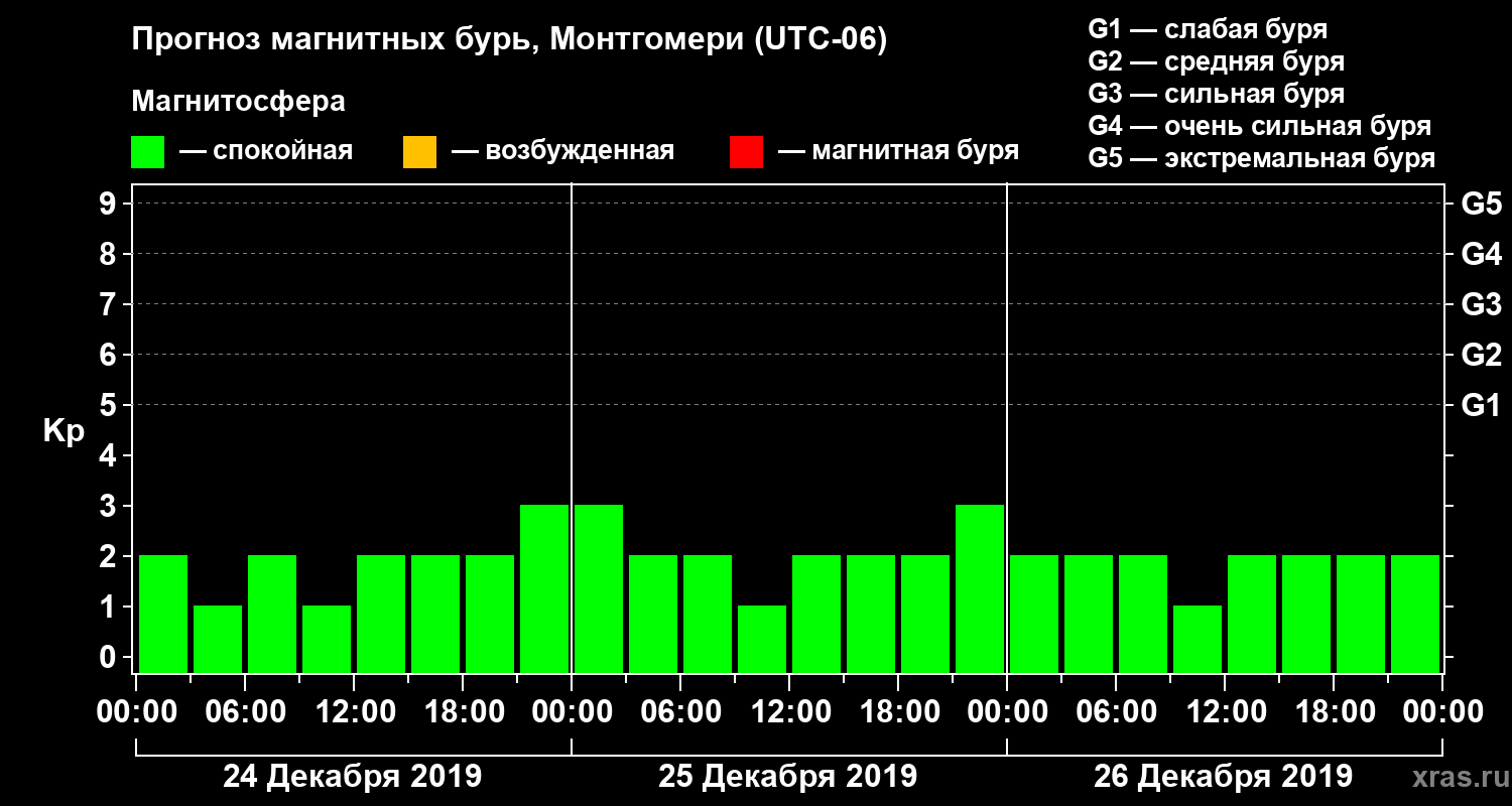 Прогноз магнитных бурь Монтгомери на 24 декабря 2019 года