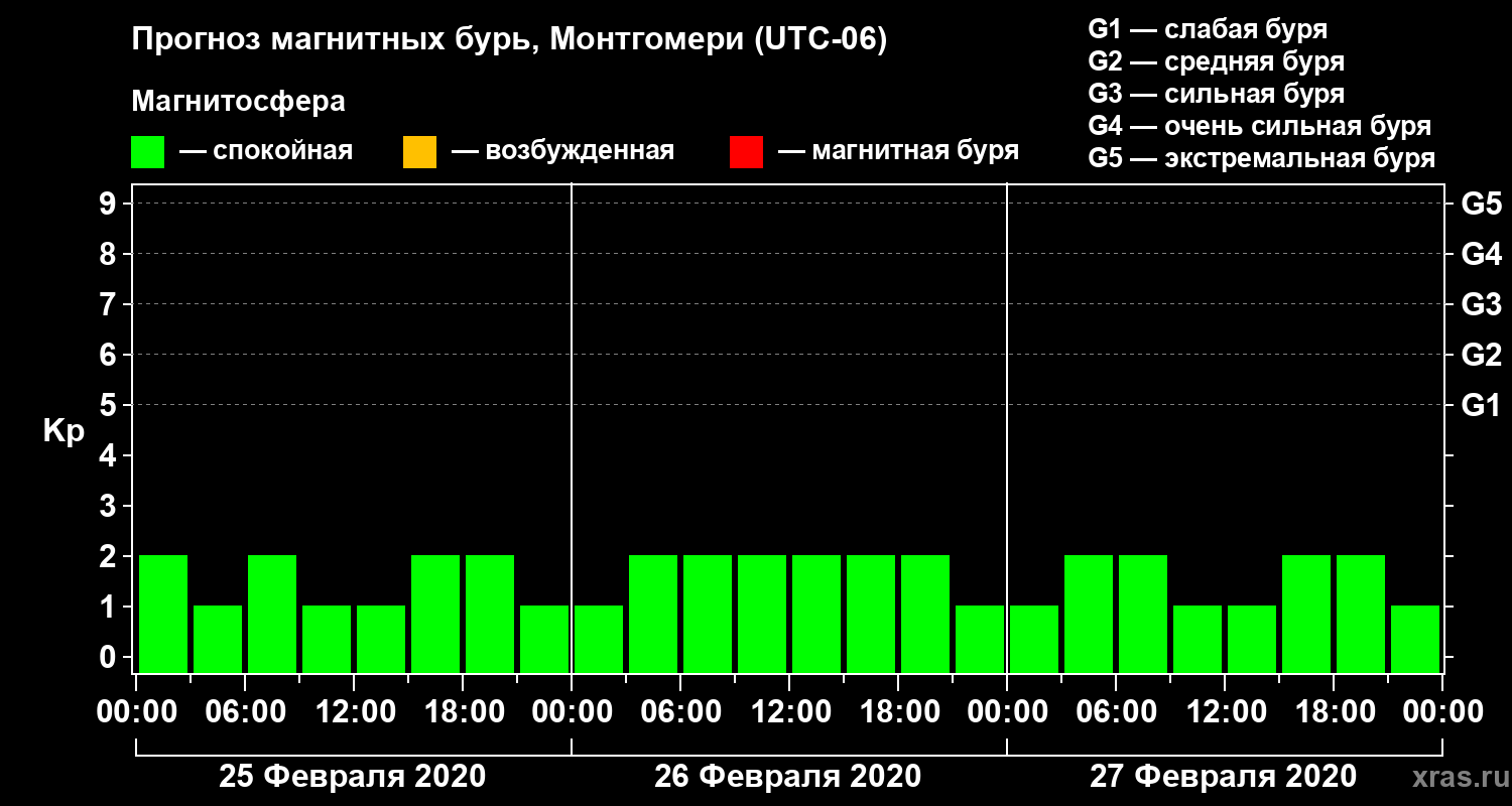Прогноз магнитных бурь Монтгомери — 25 февраля 2020 года