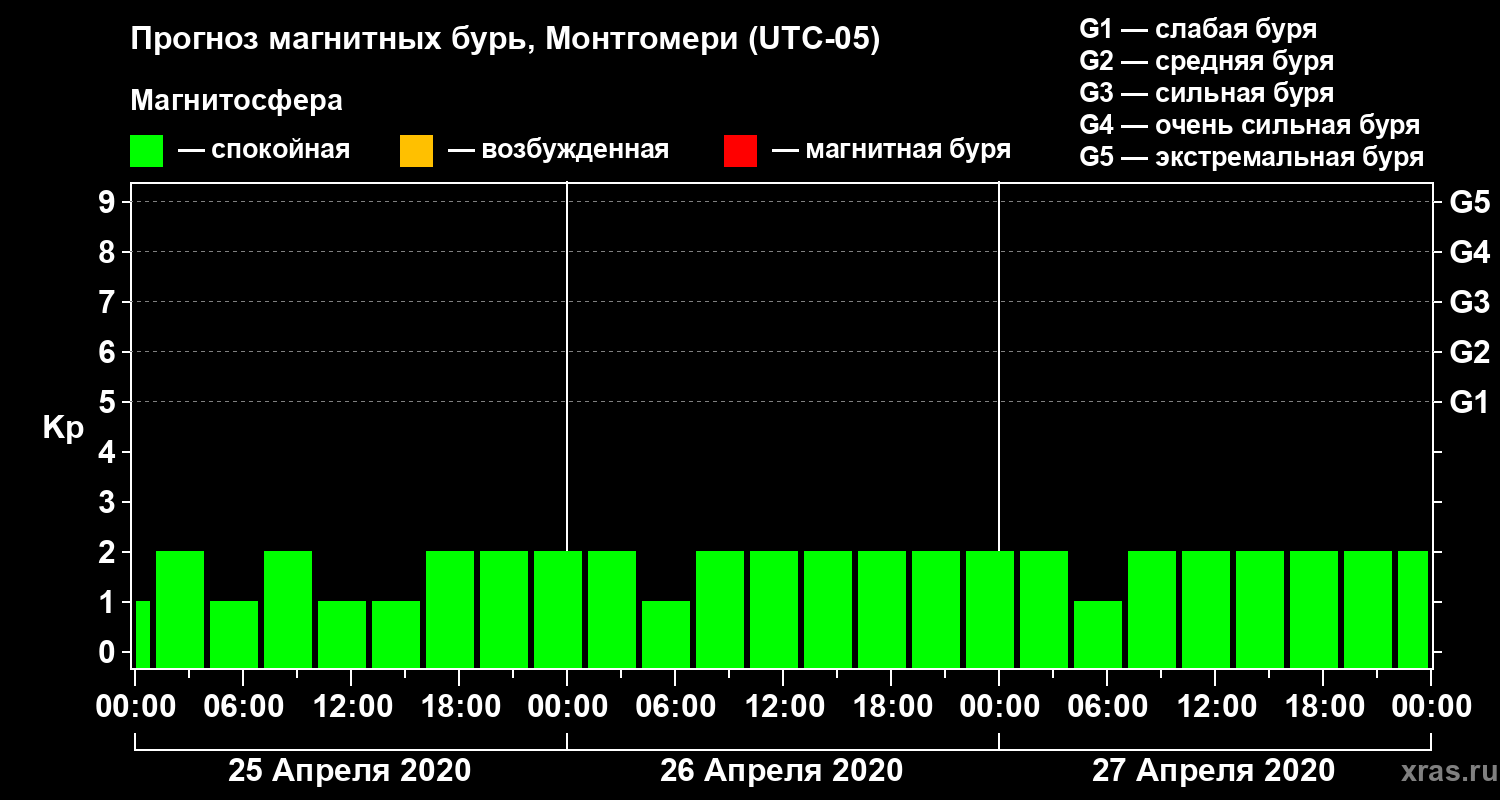 Прогноз магнитных бурь Монтгомери на 25 апреля 2020 года