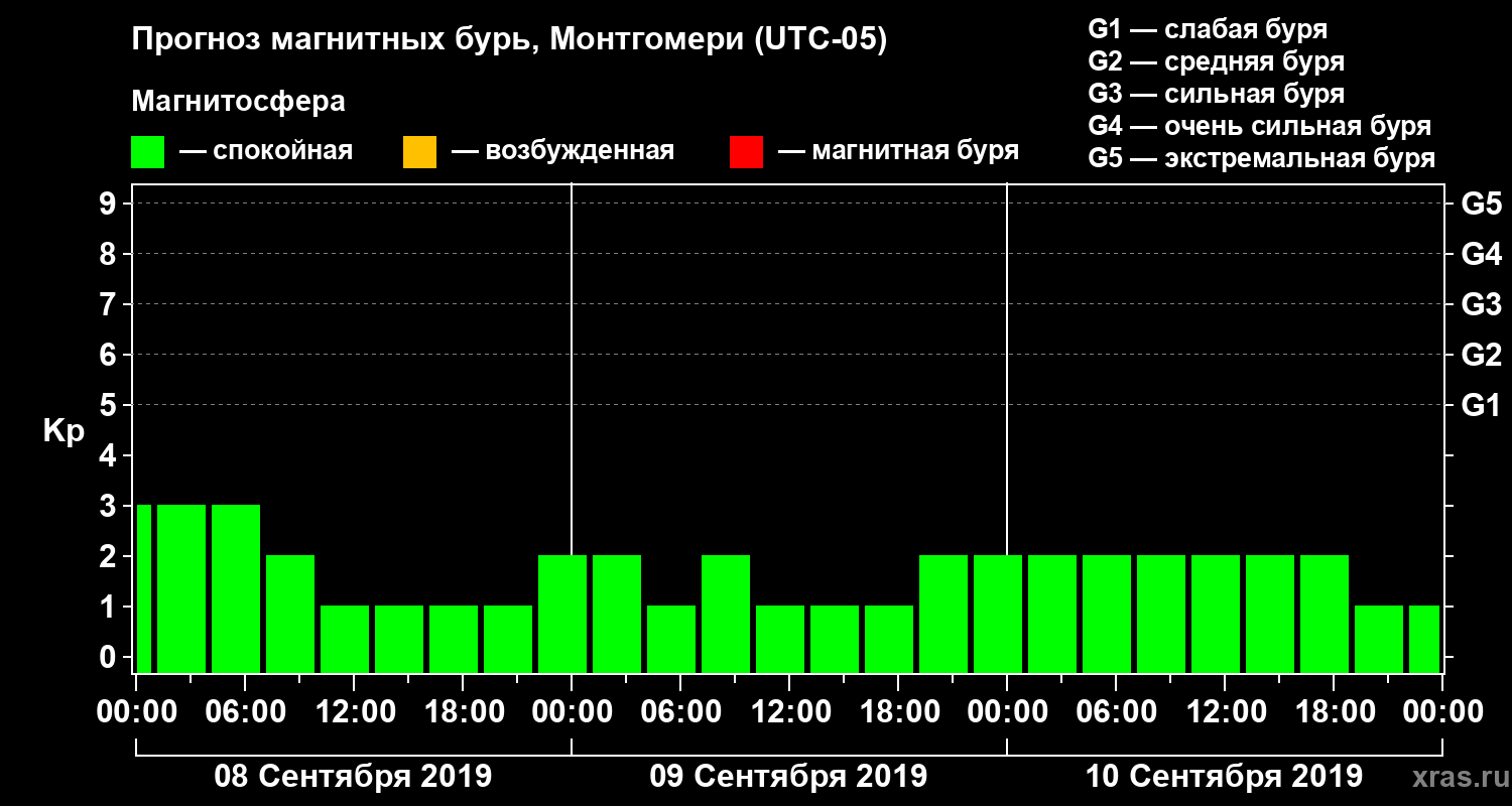 Прогноз магнитных бурь Монтгомери — 8 сентября 2019 года