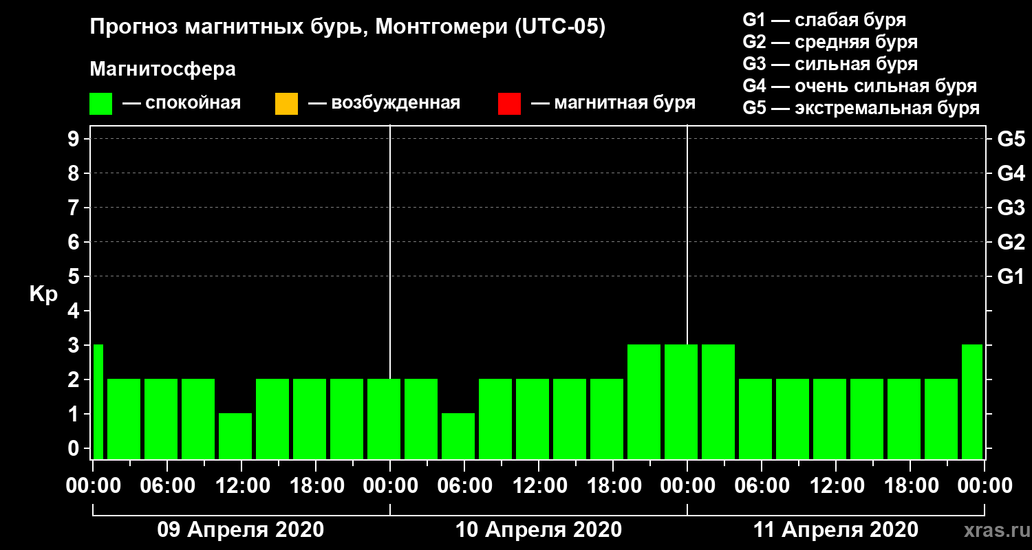 Прогноз магнитных бурь Монтгомери на 9 апреля 2020 года