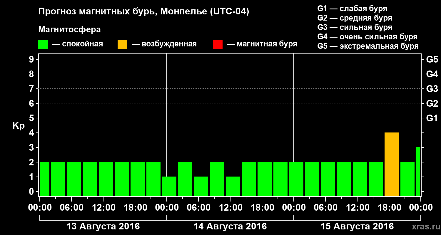 Прогноз магнитных бурь в Монпелье — 13 августа 2016 года