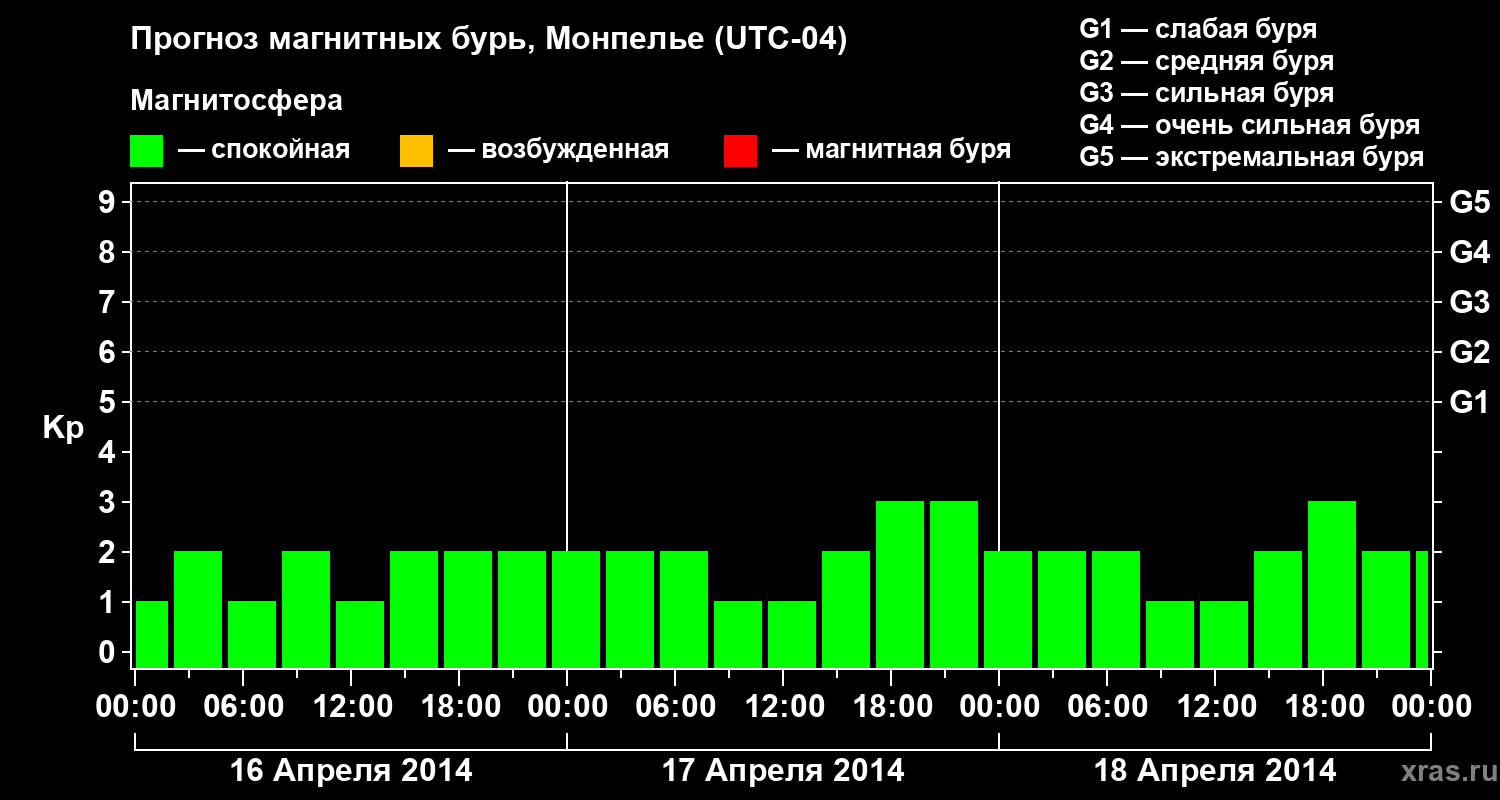 Прогноз магнитных бурь в Монпелье — 16 апреля 2014 года