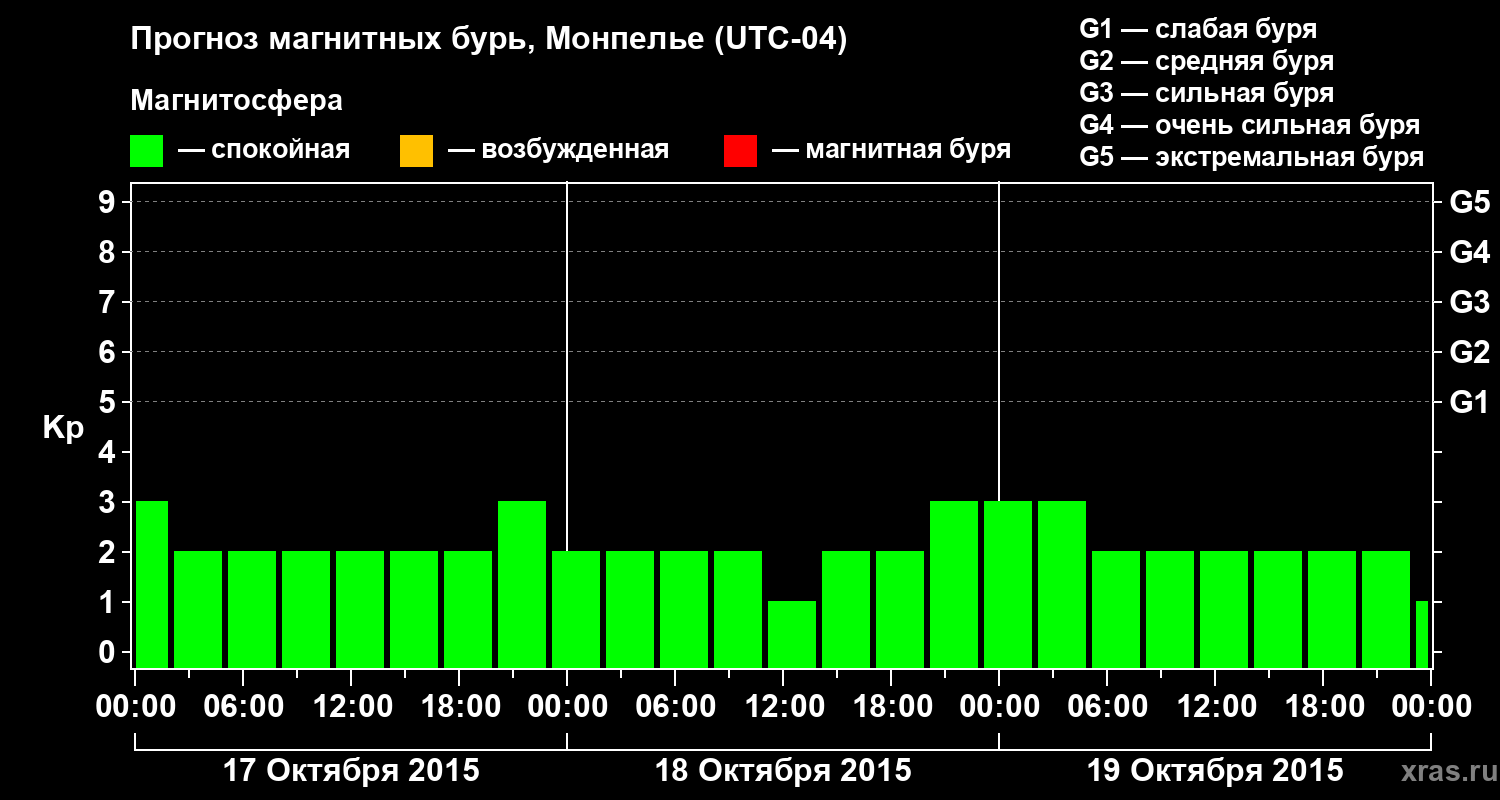 Прогноз магнитных бурь в Монпелье — 17 октября 2015 года