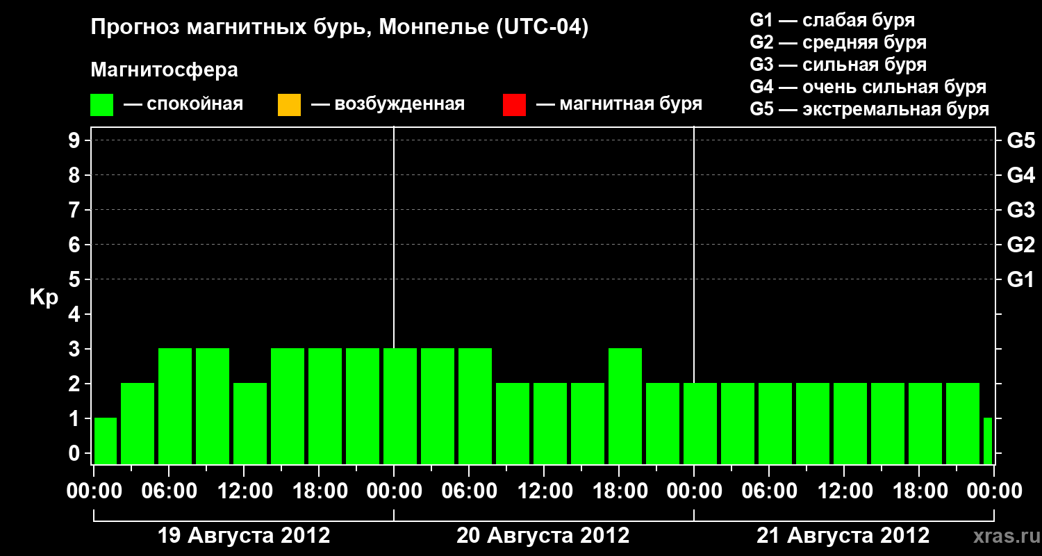 Прогноз магнитных бурь в Монпелье на 19 августа 2012 года