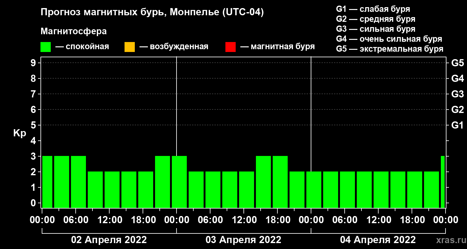 Прогноз магнитных бурь в Монпелье — 2 апреля 2022 года