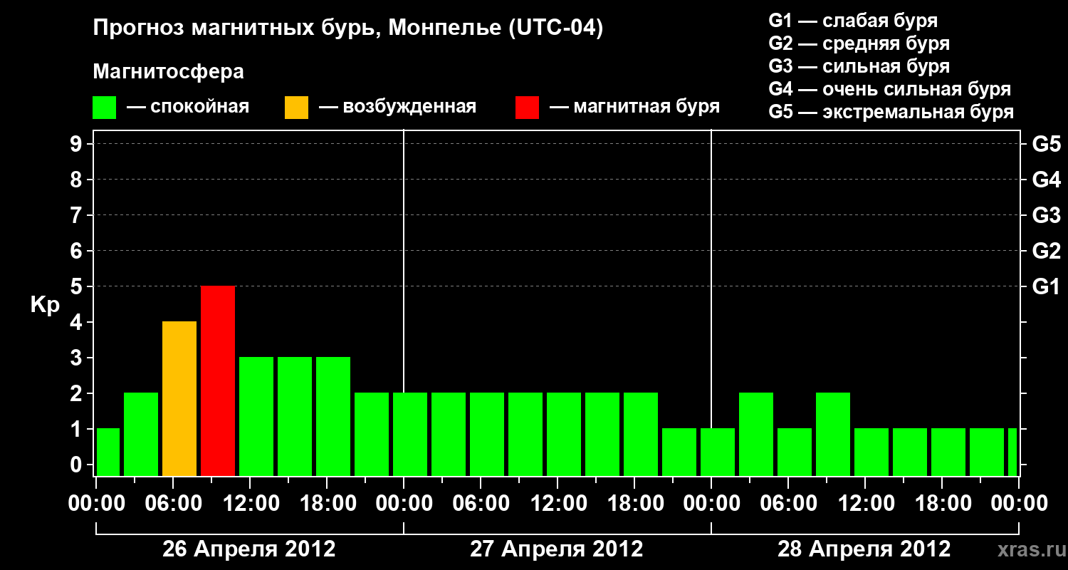 Прогноз магнитных бурь в Монпелье на 26 апреля 2012 года