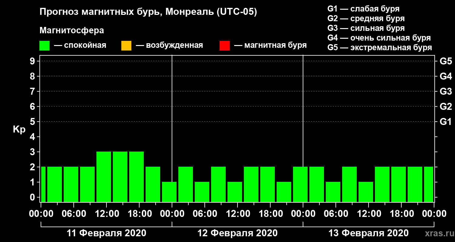 Прогноз магнитных бурь в Монреале — 11 февраля 2020 года