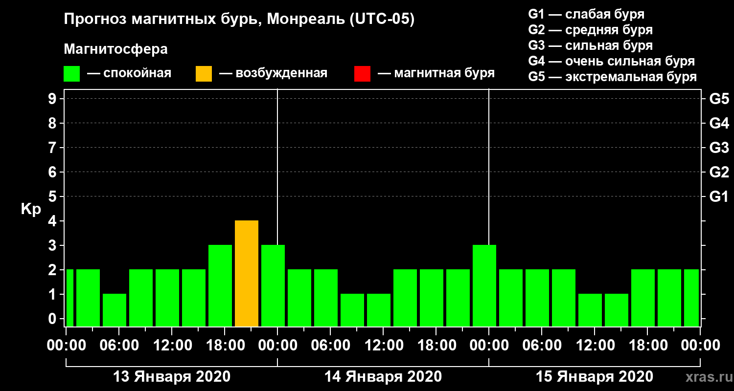 Прогноз магнитных бурь в Монреале — 13 января 2020 года