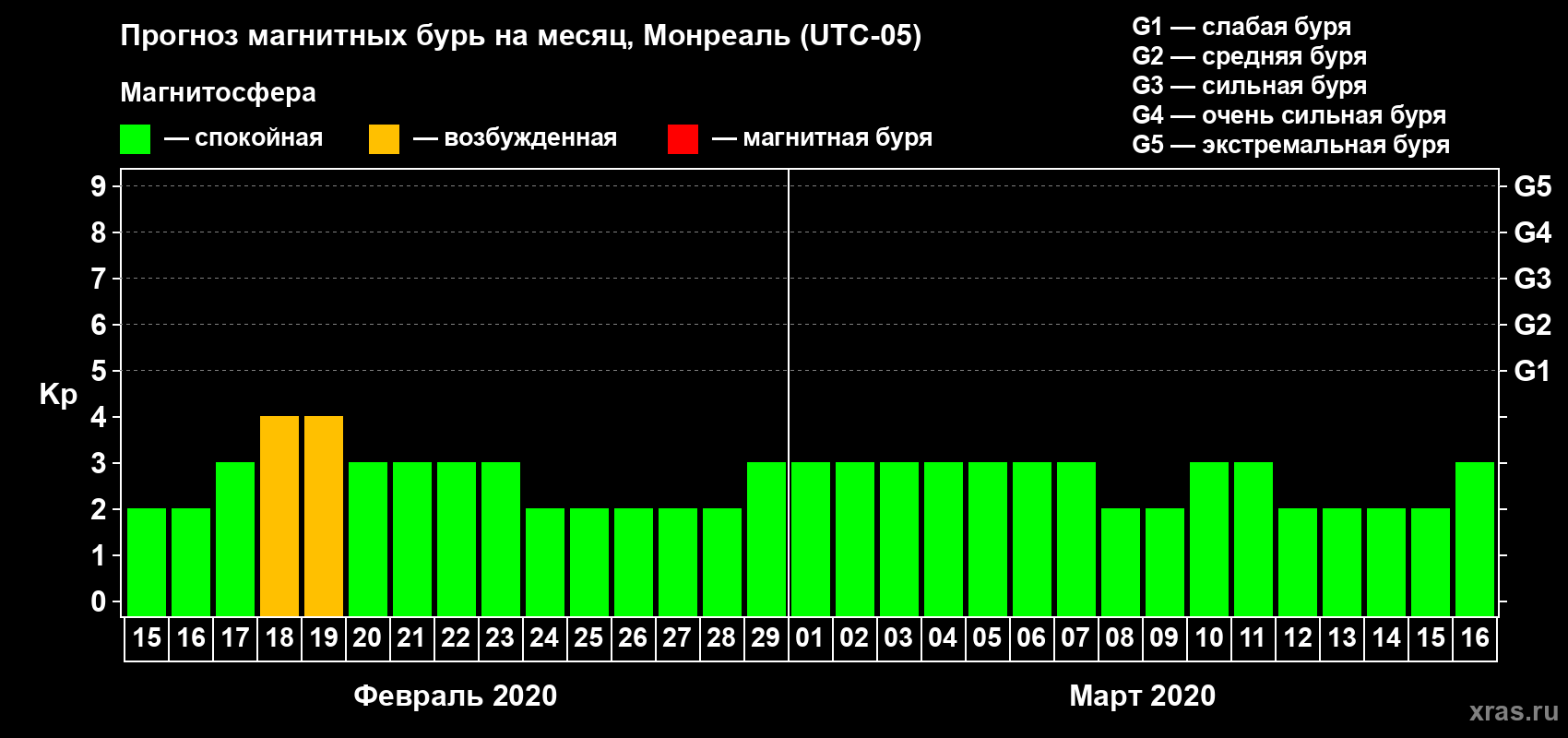 Прогноз магнитных бурь в Монреале — 15 февраля 2020 года