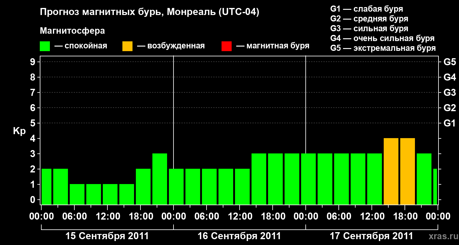 Прогноз магнитных бурь в Монреале — 15 сентября 2011 года