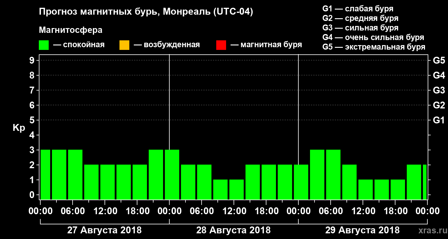 Прогноз магнитных бурь в Монреале — 27 августа 2018 года