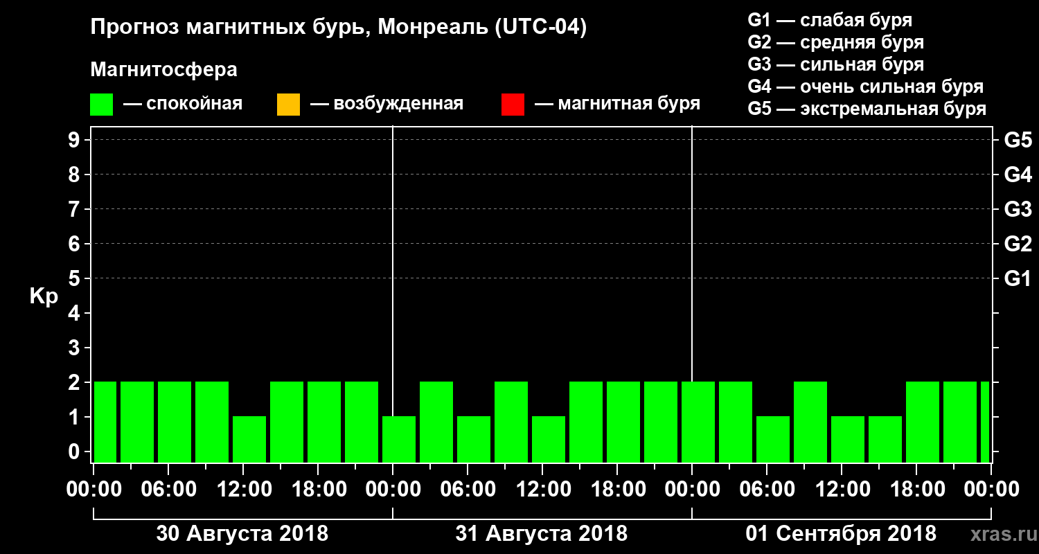 Прогноз магнитных бурь в Монреале на 30 августа 2018 года