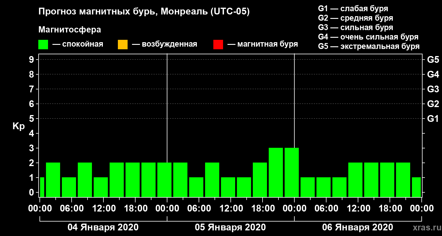 Прогноз магнитных бурь в Монреале — 4 января 2020 года