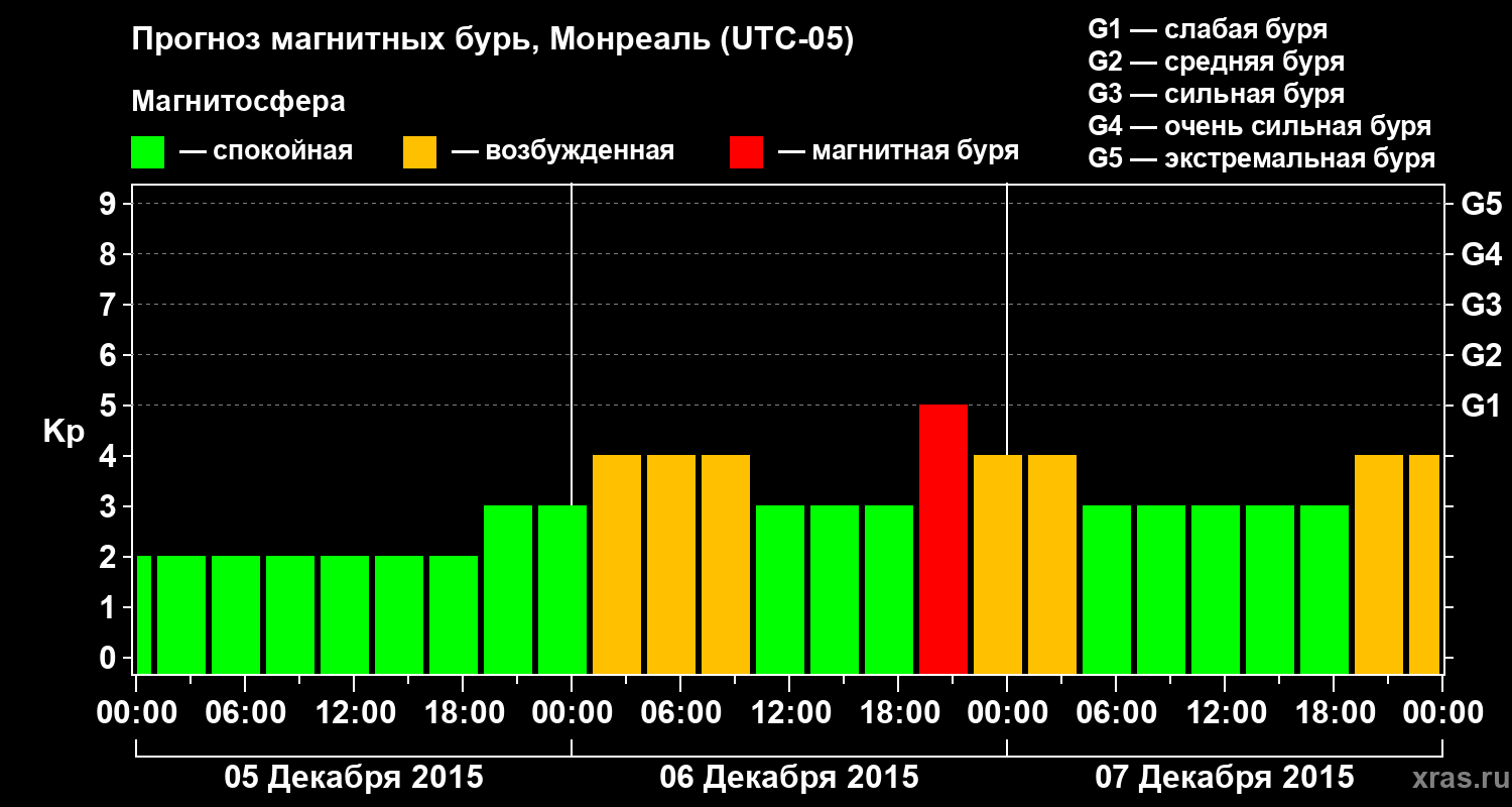 Прогноз магнитных бурь в Монреале на 5 декабря 2015 года