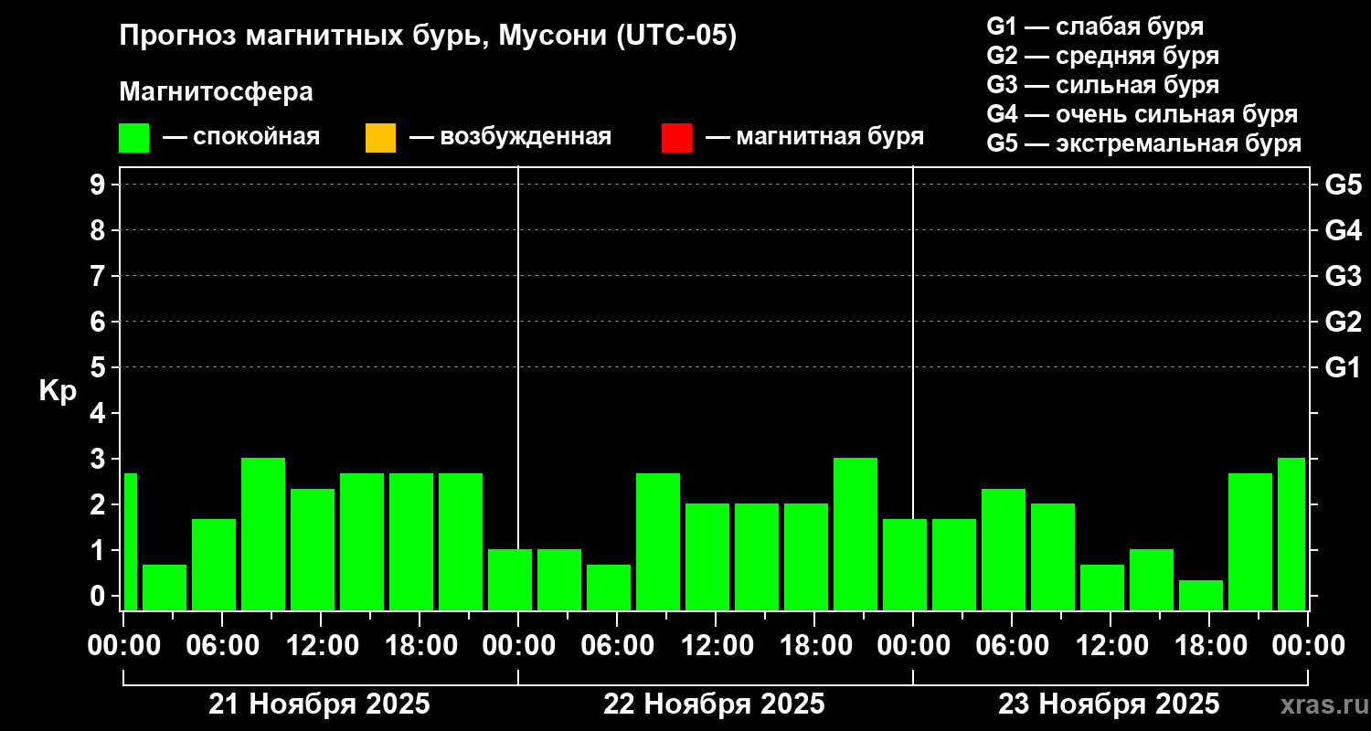 Прогноз магнитных бурь Мусони на 21 ноября 2025 года
