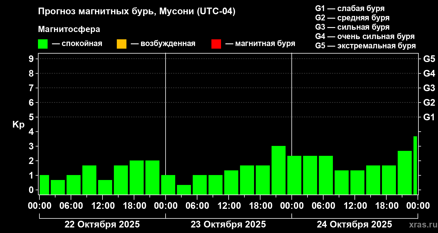 Прогноз магнитных бурь Мусони на 22 октября 2025 года