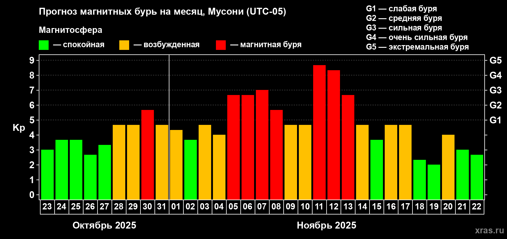 Прогноз магнитных бурь Мусони на 23 октября 2025 года