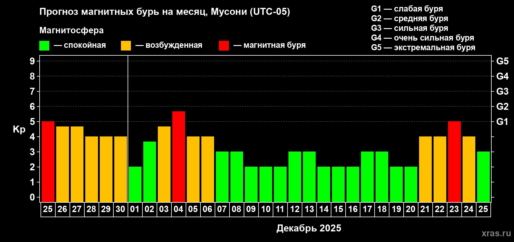 Прогноз магнитных бурь Мусони на 25 ноября 2025 года