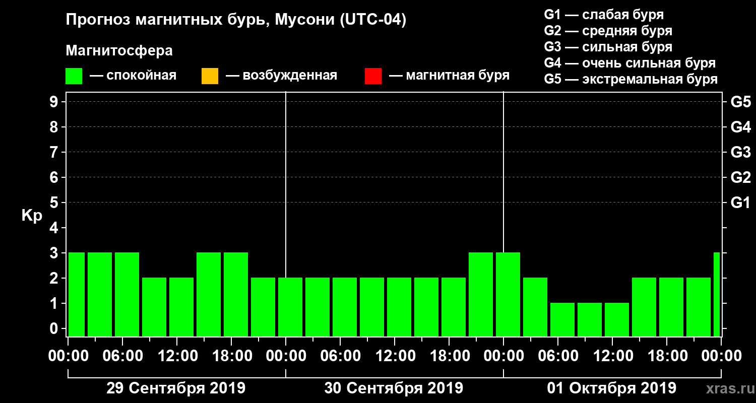 Прогноз магнитных бурь Мусони на 29 сентября 2019 года