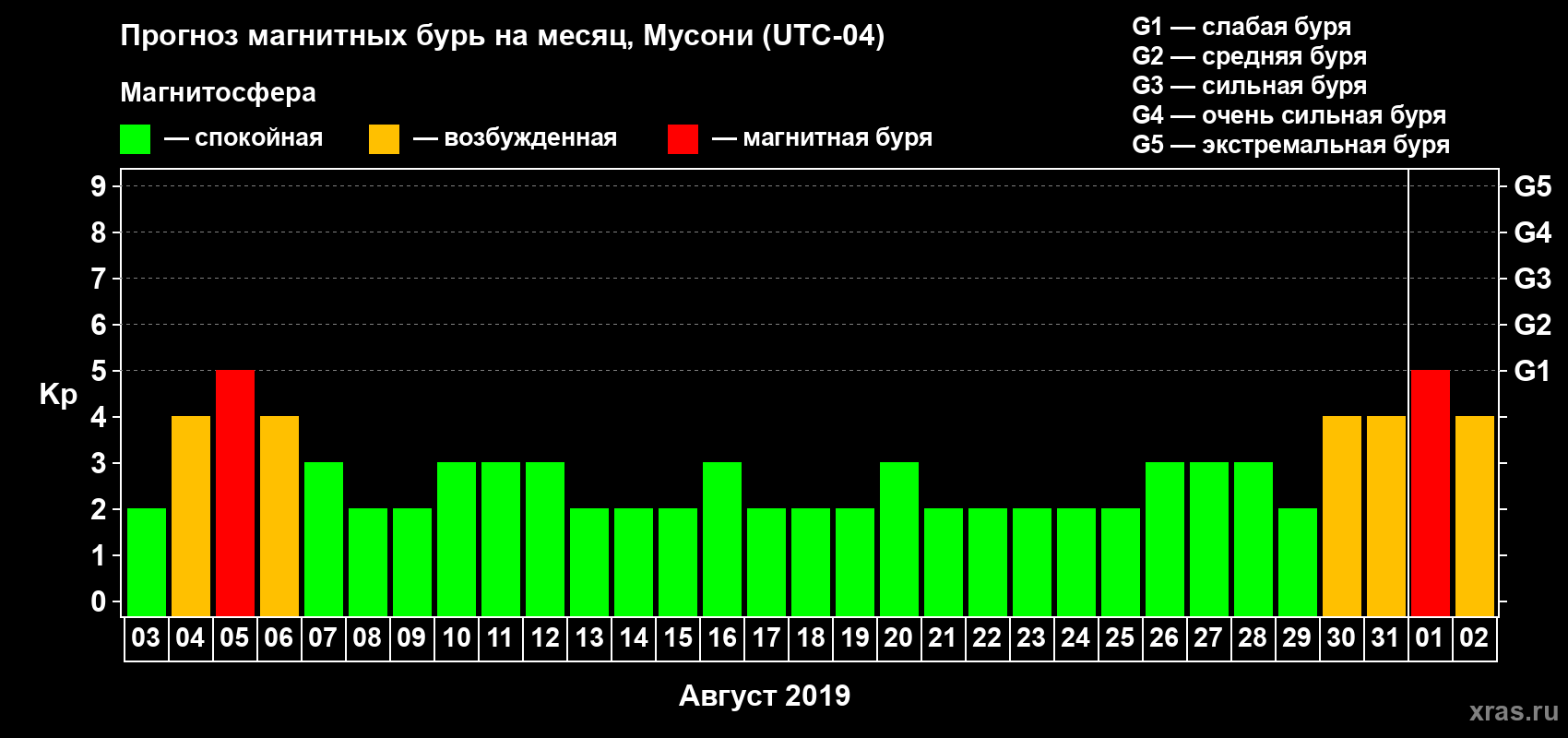 Прогноз магнитных бурь Мусони на 3 августа 2019 года