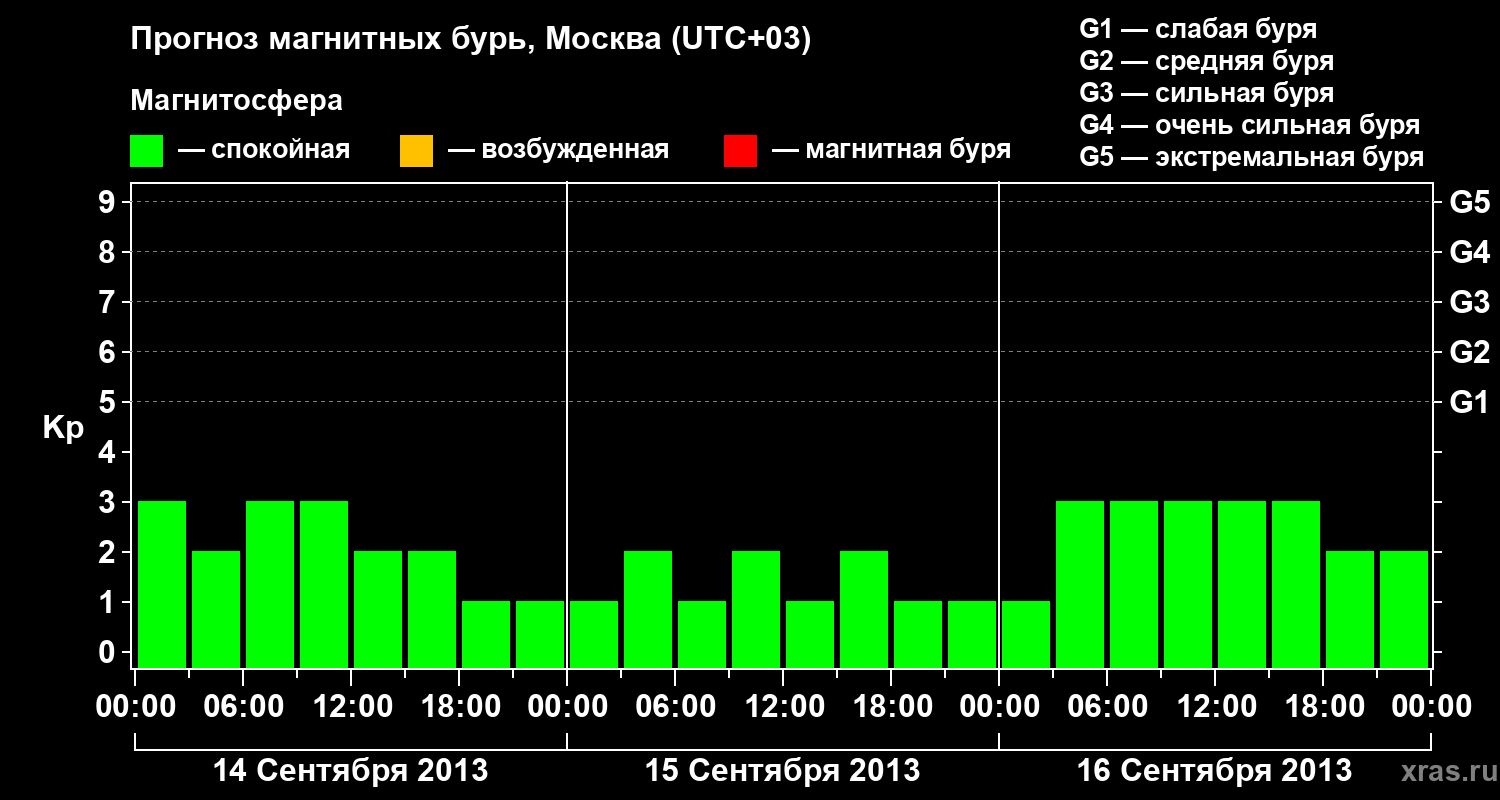 Прогноз магнитных бурь в Москве — 14 сентября 2013 года