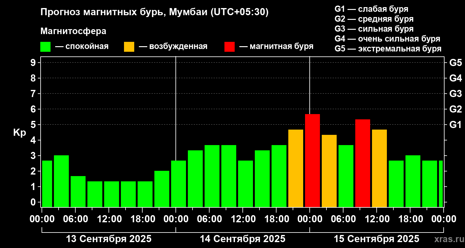 Прогноз магнитных бурь Мумбаи — 13 сентября 2025 года