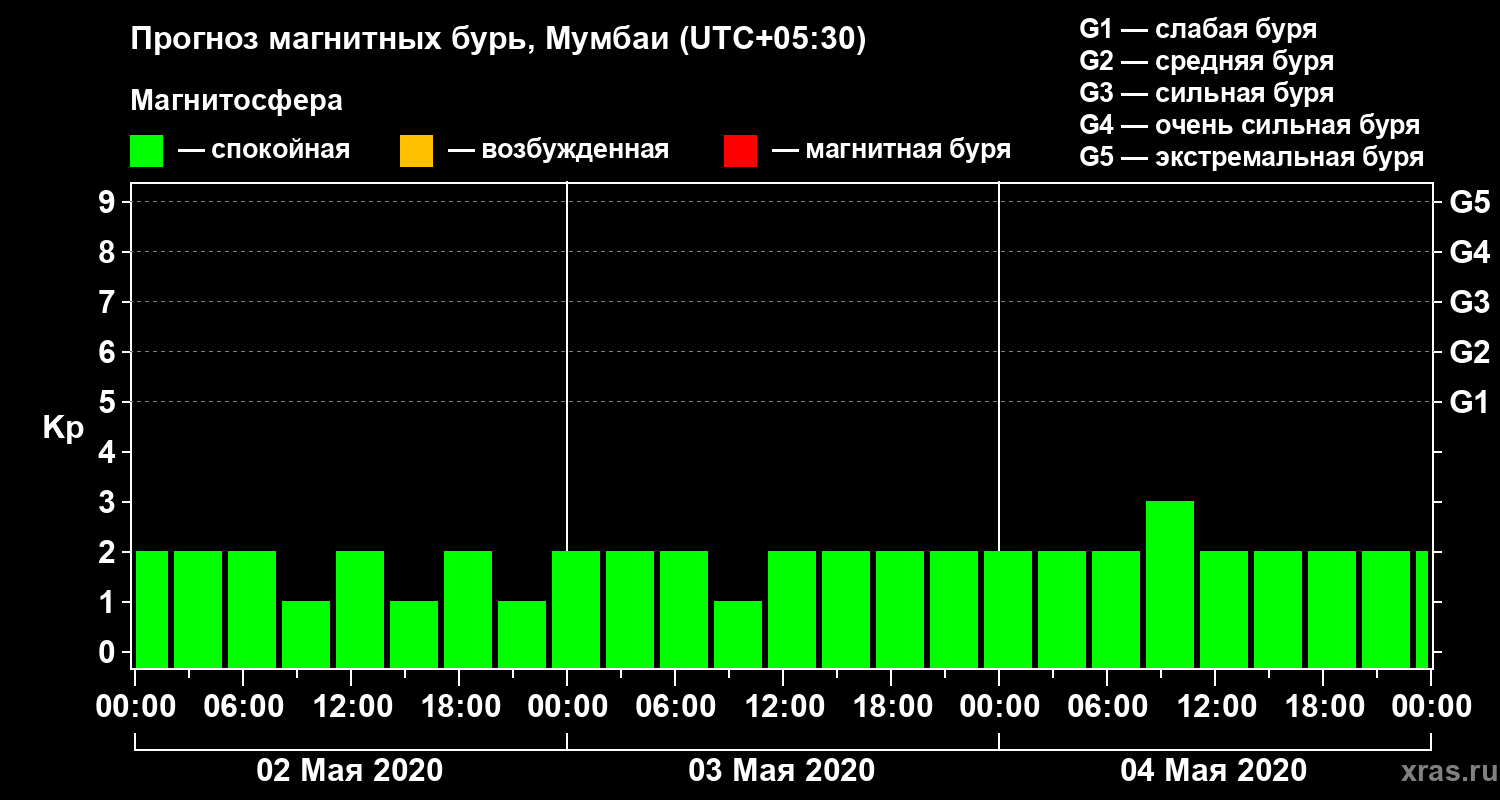 Прогноз магнитных бурь Мумбаи — 2 мая 2020 года