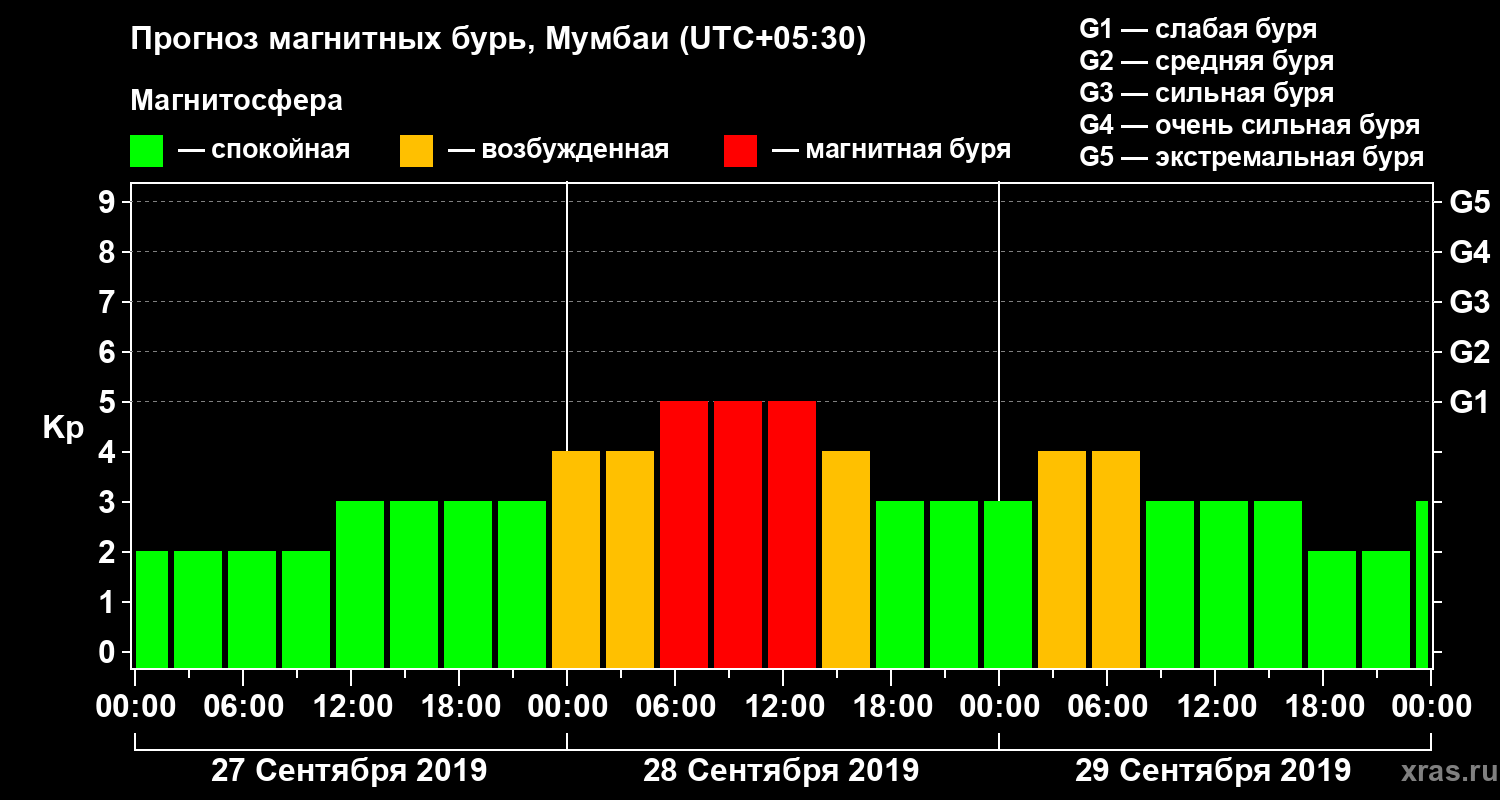 Прогноз магнитных бурь Мумбаи — 27 сентября 2019 года