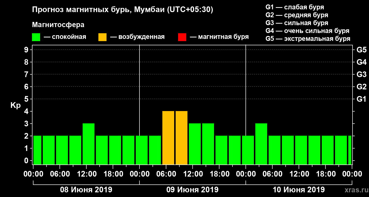Прогноз магнитных бурь Мумбаи — 8 июня 2019 года