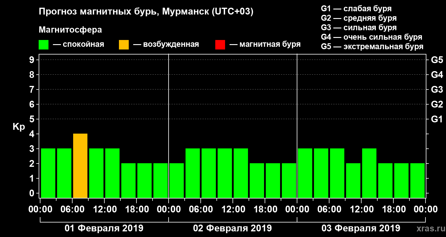 Прогноз магнитных бурь в Мурманске на 1 февраля 2019 года
