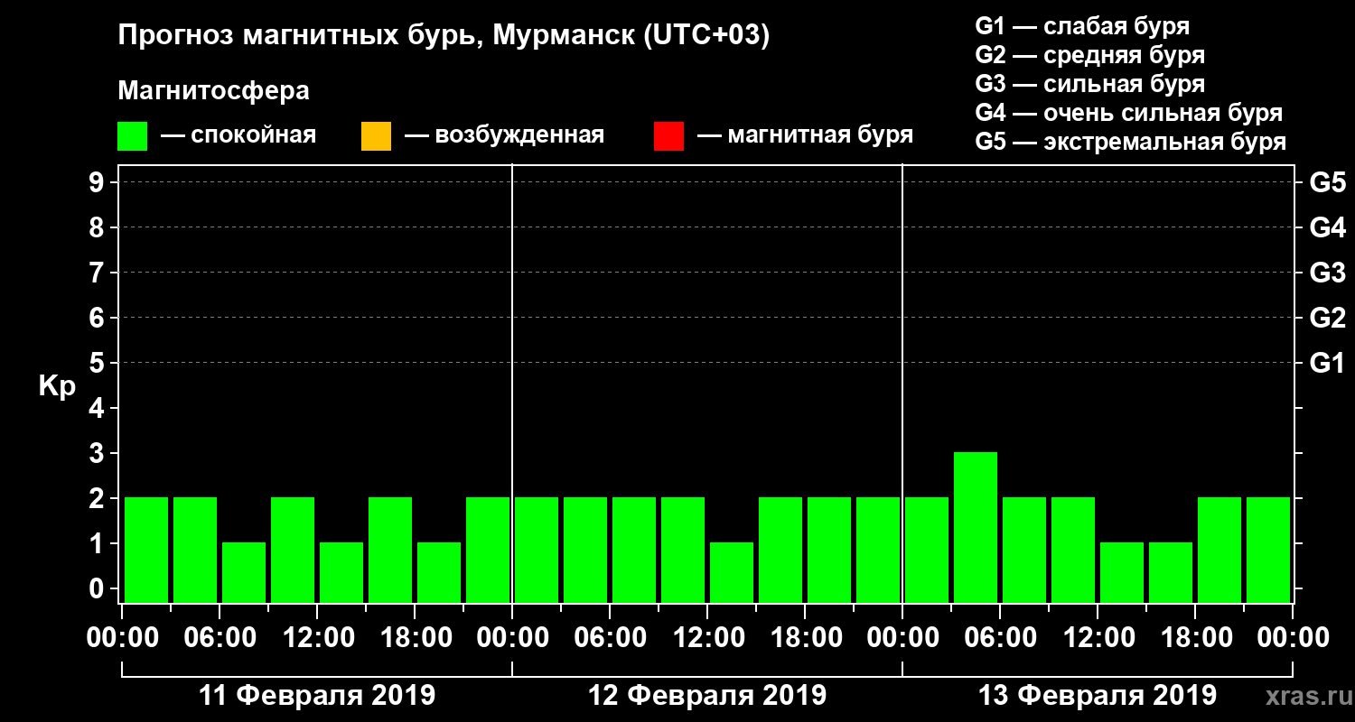 Прогноз магнитных бурь в Мурманске на 11 февраля 2019 года