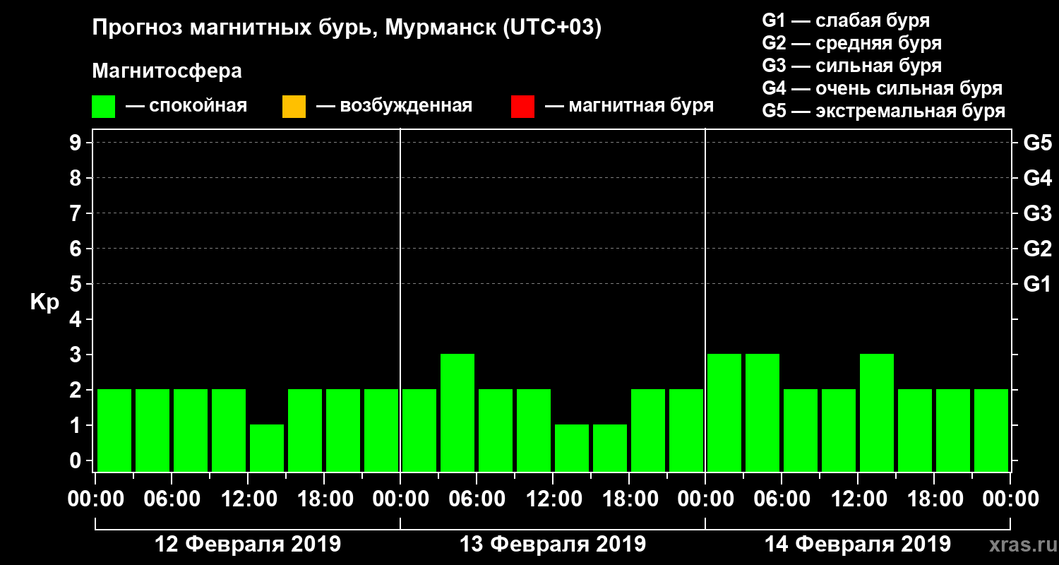 Прогноз магнитных бурь в Мурманске — 12 февраля 2019 года