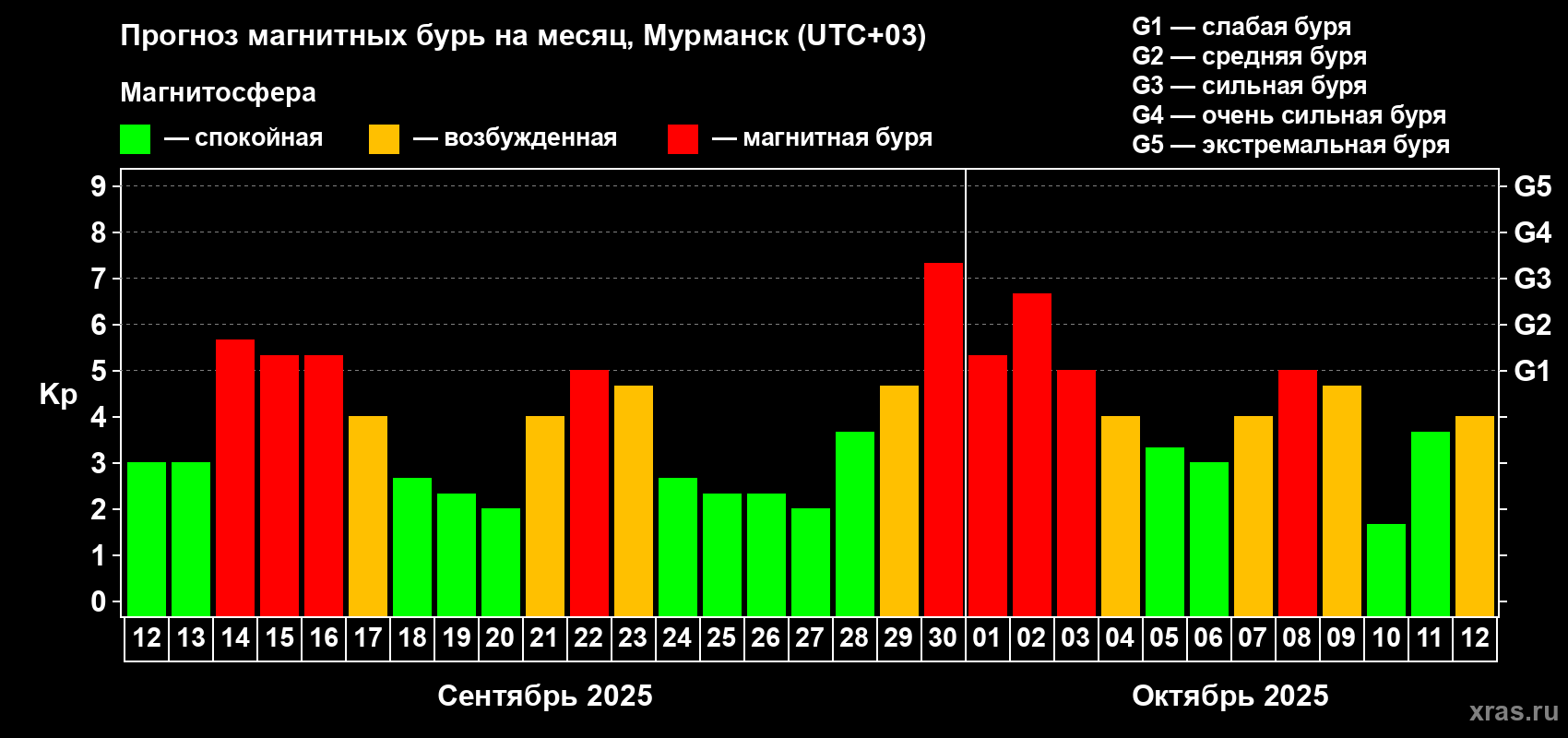 Прогноз магнитных бурь в Мурманске — 12 сентября 2025 года
