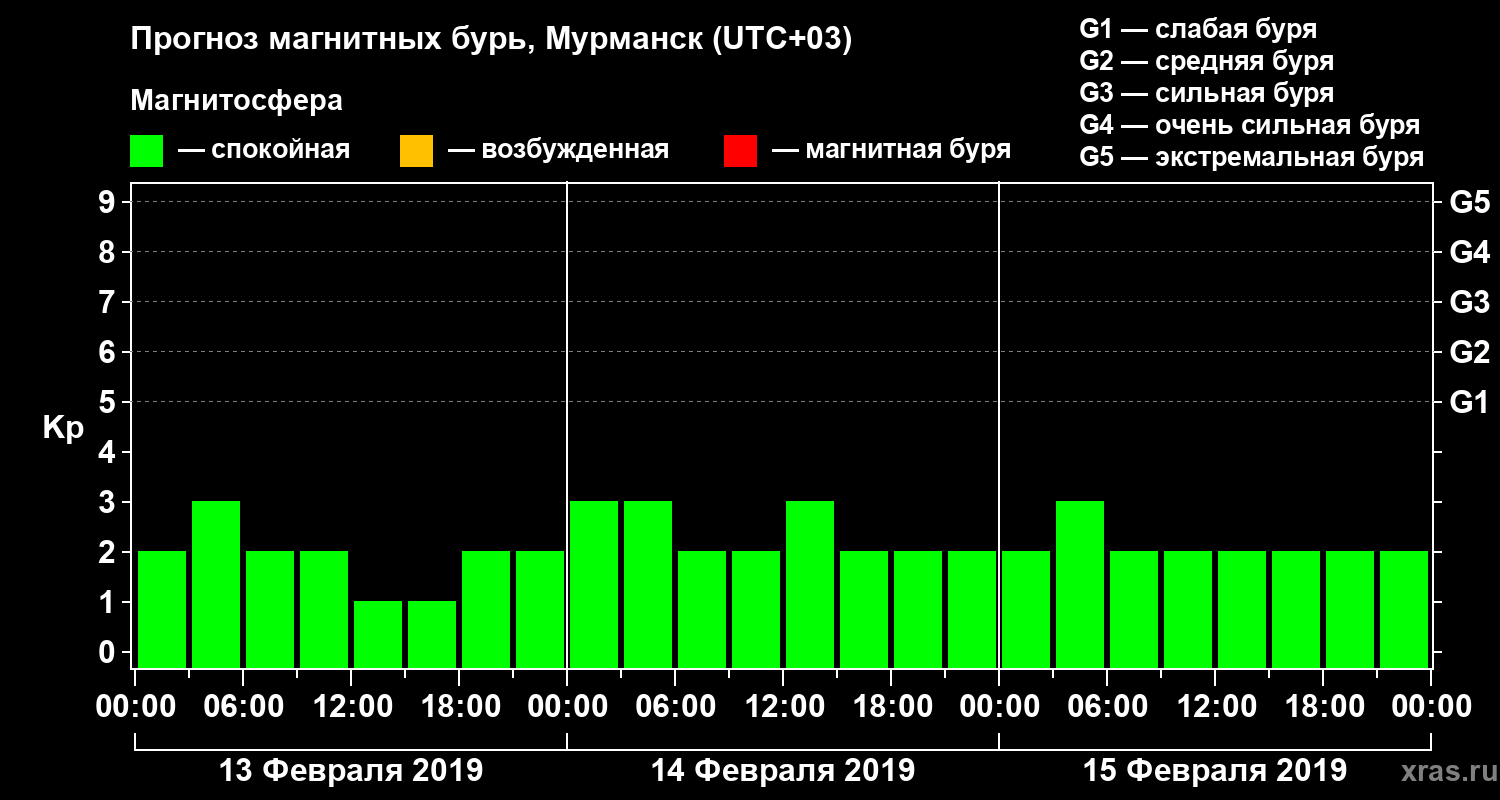 Прогноз магнитных бурь в Мурманске — 13 февраля 2019 года
