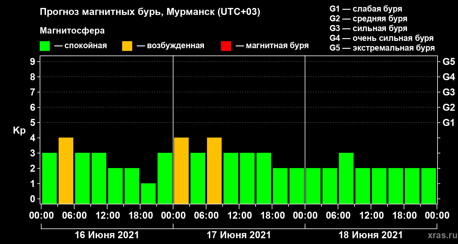 Прогноз магнитных бурь в Мурманске — 16 июня 2021 года