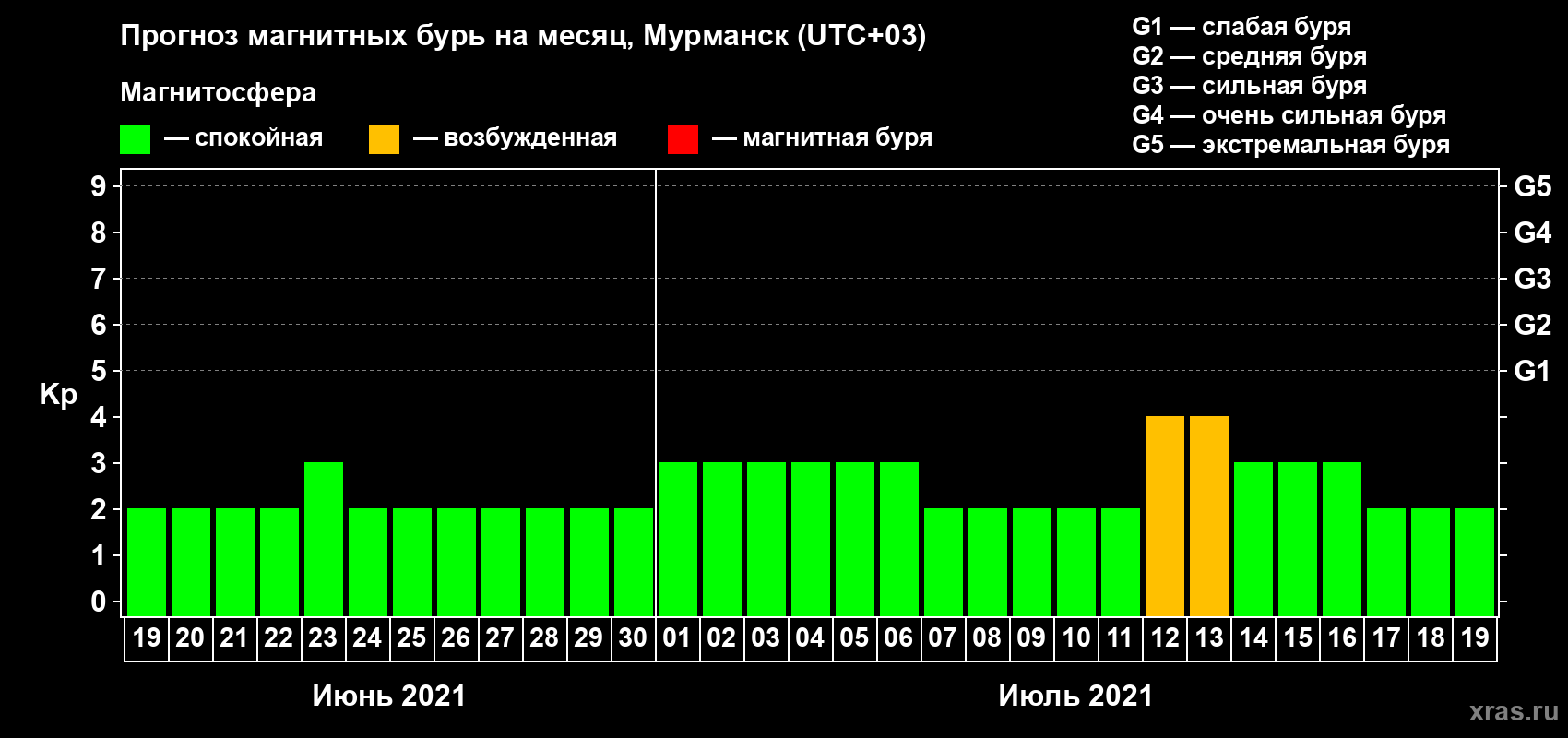 Прогноз магнитных бурь в Мурманске — 19 июня 2021 года