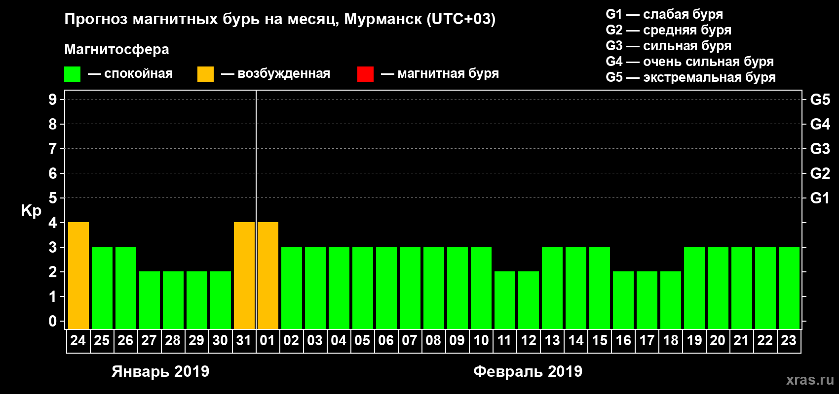 Прогноз магнитных бурь в Мурманске на 24 января 2019 года