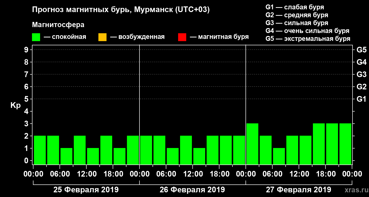 Прогноз магнитных бурь в Мурманске — 25 февраля 2019 года