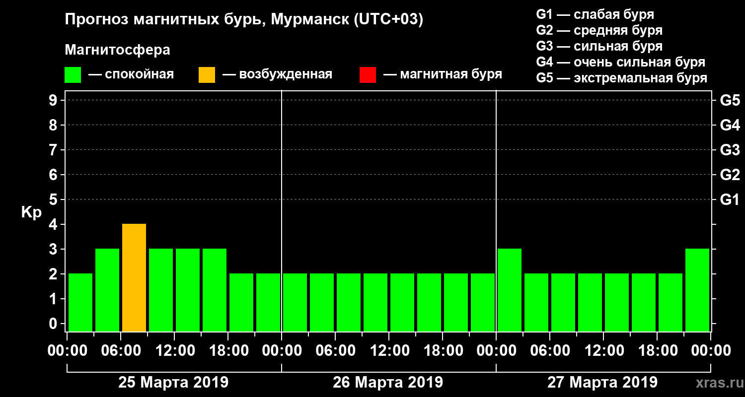 Прогноз магнитных бурь в Мурманске — 25 марта 2019 года