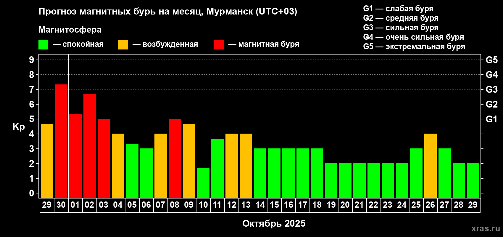 Прогноз магнитных бурь в Мурманске — 29 сентября 2025 года